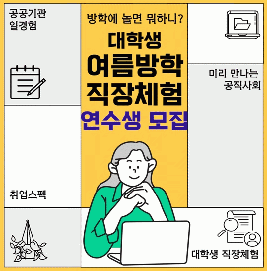 대학생 직장체험은 순천시에 거주하는 대학교 재학생 또는 휴학생에게 공공기관 근무 경험을 통해 공직사회의 이해를 높이고, 다양한 사회경험과 현장체험을 통해 적성에 맞는 진로 탐색의 기회를 제공하는 사업이다.