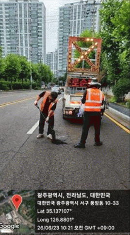 도로파임 등 신고는 종합건설본부 도로관리과(062-613-6796, 6797), 빛고을콜센터(120) 등으로 하면 된다.