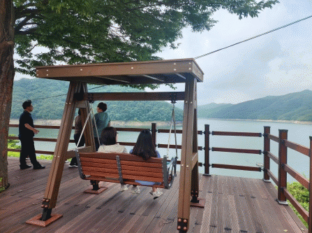 장흥댐 휴게소 내 쉼터는 장흥댐의 빼어난 풍광과 주변 산 들을 한눈에 조망할 수 있다.