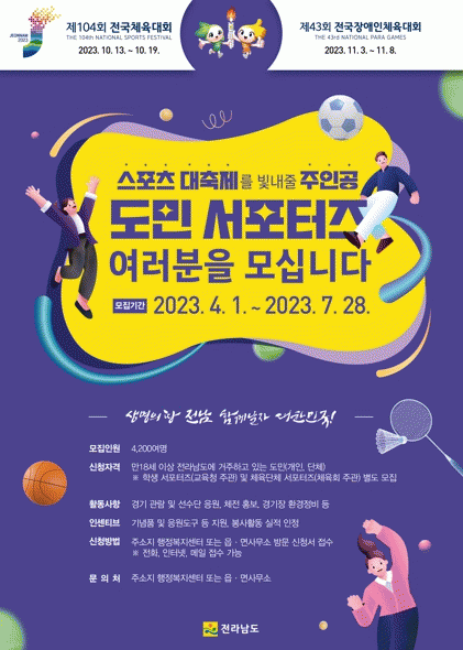 선발된 서포터즈는 오는 10월부터 11월까지 전국체전과 전국장애인체전이 끝나는 2개월간 활동하게 된다.