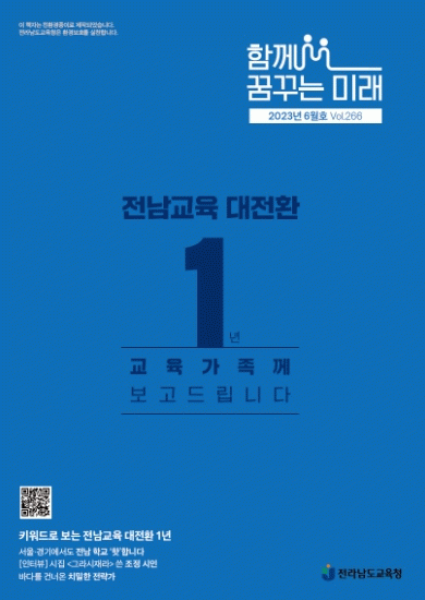 6월호 특집은 출범 1주년을 맞은 주민직선 4기 전남교육의 성찰과 다짐이다. ‘전남교육 대전환’이라는 비전 아래 달려온 지난 1년간의 전남교육을 △ 역량 중심 교육으로의 전환 △ 공생하는 교육생태계 구축 △ 디지털 교육 기반 마련 등 3개 섹션으로 나눠 인포그래픽과 함께 보여준다.