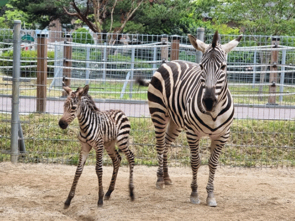 이중 암컷 ‘망이’가 5월 ‘오이’(수컷)를 낳은데 이어, 6월에는 ‘포스’가 ‘토리’(암컷)를 낳으면서 새끼가 3마리로 늘었다. 오이와 포스는 1m 정도 크기로 태어나 엄마 얼룩말들의 보호 아래 건강하게 자라고 있다.