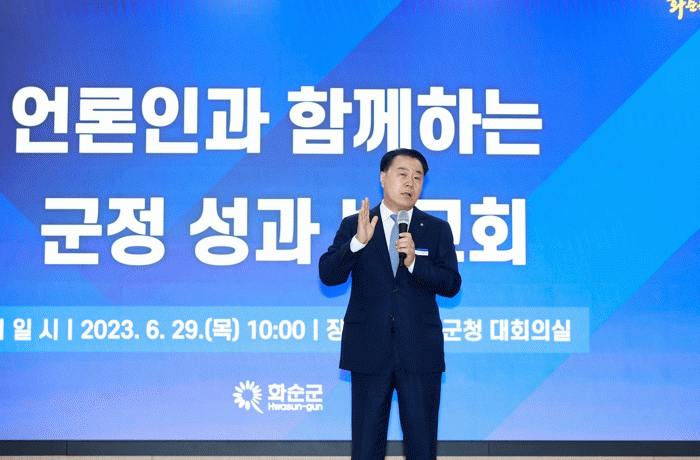 ‘언론인과 함께하는 군정 성과 보고회’란 주제로 개최된 이날 보고회는 화순군 일반현황, 역점사업, 주요성과 및 우수시책을 설명한 후, 기자들과 질의·답변하는 공감대화 순으로 마무리됐다.