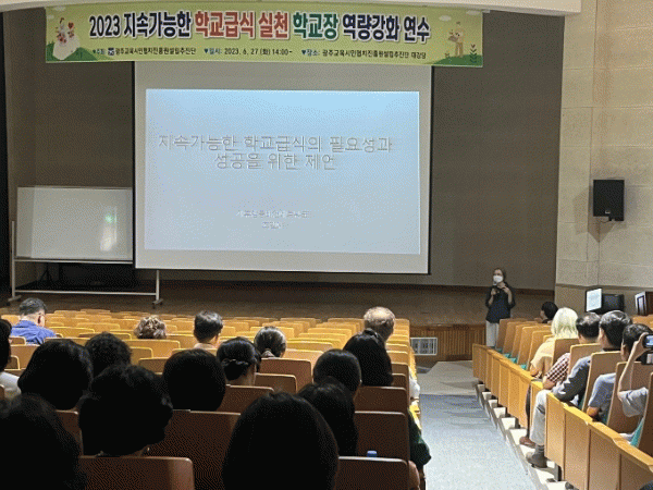 이번 연수는 ‘지속가능한 학교급식의 필요성과 성공을 위한 제언’을 주제로 실시됐다. 사단법인 기후행동비건네트워크 대표인 조길예 전남대학교 명예교수를 강사로 초빙해 진행된 이번 연수는 관내 초·중·고·특수학교장 200여 명이 참석했다.
