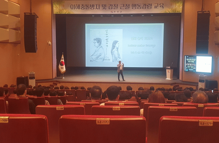 이날 교육은 국민권익위원회 이영택 행동강령과장이 강사로 나서 실제 일어난 갑질 행위 유형, 갑질 대책, 공직자의 5대 신고 및 5대 금지의무 등에 대해 다양한 사례 중심으로 강의를 진행했다.