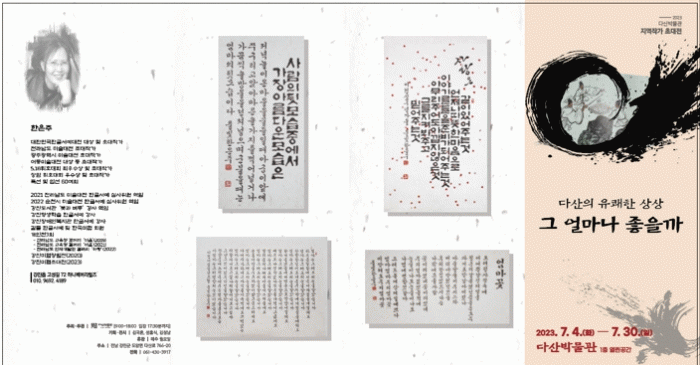 김국혼 다산박물관장은 “한은주 작가의 서예전을 통해 붓글씨의 멋과 따스한 글을 통해 일상의 지친 마음에 작은 위로가 되길 바란다”고 말했다.