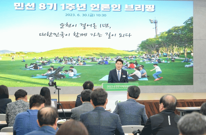 노관규 시장은 이날 국제습지센터 컨퍼런스홀에서 취임 1주년 브리핑을 열고 민선 8기 1년의 성과와 남은 3년의 방향을 기자들에게 설명했다.