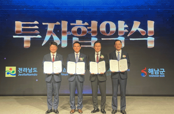 전남도, 해남군, 대한조선은 투자설명회에 앞서 첫 번째로 화원산단 개발에 투자 결정을 내린 크레도오프쇼어와 투자협약을 했다. 크레도오프쇼어는 신안 해상풍력발전사협의체 회장사로 신안에 7개 사업 2.4GW를 포함해 전남에서 4.5GW의 해상풍력발전사업을 추진하고 있다. 이번 투자협약으로 화원산단 지원항만 조성을 위해 400억 원을 투자할 계획이다.