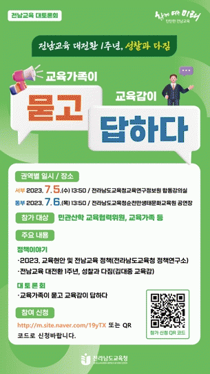 한편 ‘전남교육 대토론회’참여 방법과 자세한 행사 내용과 관련해서는 전라남도교육청 누리집과 SNS에서 확인할 수 있다.