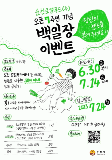 이번 백일장 이벤트는 순천시와 시민, 시민단체 등이 함께 만든 순천로컬푸드(주)의 지난 7년간의 성공적인 운영을 기념하고, 시민과의 소통을 통한 로컬푸드 인식 확대를 위해 열린다.