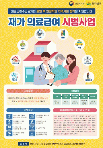 이상심 전남도 보건복지국장은 “병원이 아닌 내 집에서 필요한 서비스를 받는 재가의료급여 시범사업으로 의료급여 수급자의 안정적 지역사회 복귀·정착과 의료급여 재정 절감 효과가 기대된다”며 “앞으로 전남 모든 시군으로 사업이 확대되도록 최선을 다하겠다”고 말했다.