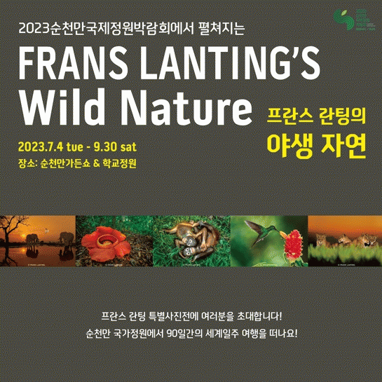 국내 최초 프란스 란팅 단독 사진전으로, 세계인의 사랑을 받아온 프란스란팅의 생동감 넘치는 야생사진과 십 년 넘게 열정으로 가꾼 순천만국가정원이 함께 어우러져 자연의 위대함을 웅장하게 보여줄 전시이다.