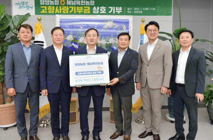 이번 상호기부는 담양농협 김범진 조합장과 해남 옥천농협 윤치영 조합장이 평소에도 다양한 교류 활동을 이어오던 와중 조합장을 비롯한 130여 명의 직원들이 상호기부에 동참하기로 마음을 모아 이뤄졌다.