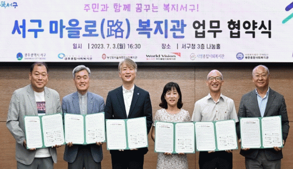이날 협약식에서 복지관은 자원의 배분 및 교육, 주민 조직화 등 지역사회 복지 문제 해결을 위해 노력하기로 했으며, 서구는 지역사회 협력체계 구축 및 거점 공간 마련 등의 행정적 지원과 자원확보를 약속했다.