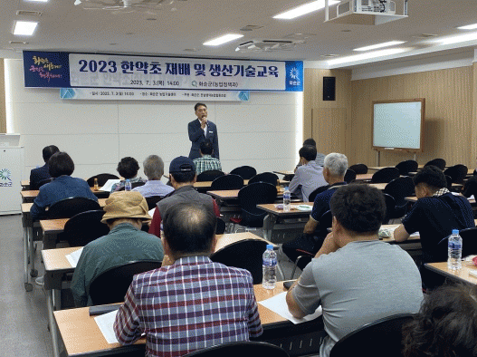 이날 교육에는 한약초 관련 지원 사업 대상자와 관심 있는 농가 40여 명이 한약초 교육에 참석했다. 화순군 지원 정책 설명, 쑥 재배 기술과 더불어 전)전남농업기술원 김명석 농학박사로부터 작약·황금·식방풍에 대한 재배 기술을 교육했다.