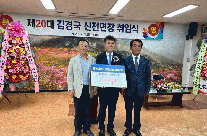 김 면장은 지난 3일, 제20대 신전면장 취임식의 자리에서 신전면 지역사회보장협의체가 추진하는 ‘행복더하기 사랑나눔 지정기탁 후원금 모금운동’에 동참하며 1백만 원을 기탁했다.