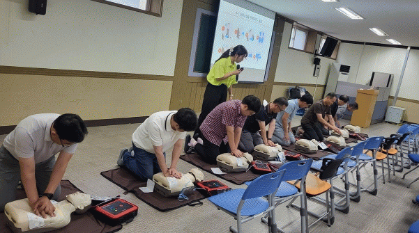 교육은 응급상황에서 의식확인 요령, 119 신고요령, 올바른 심폐소생술 자세와 방법, 심폐소생술 실습, 자동심장충격기(AED) 사용방법 등 실습 위주로 진행됐다.