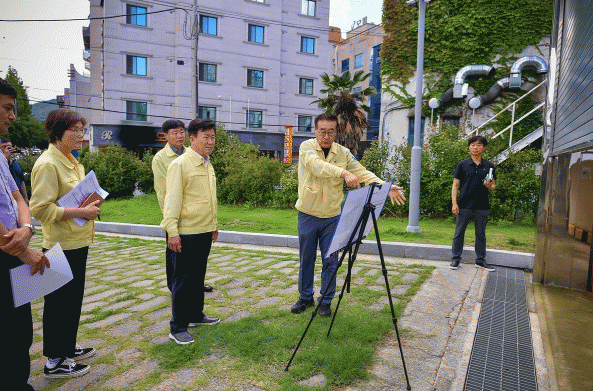 시에 따르면 5일 정 시장은 집중호우로 재해가 예상되는 급경사지와 우수저류시설을 찾아 안전점검을 실시했다.