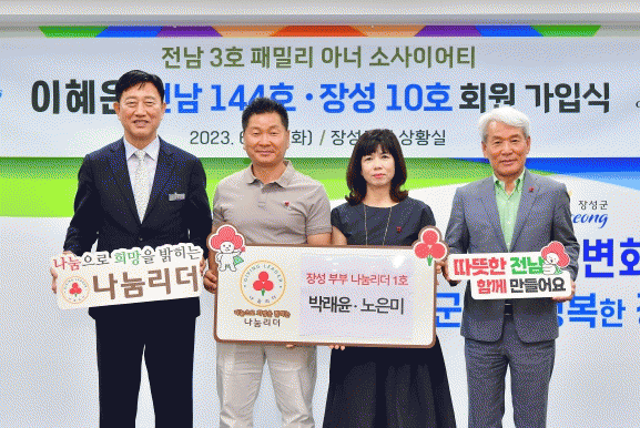 ‘나눔 리더’도 새롭게 탄생했다. 박래윤, 노은미 부부가 연 100만 원 기부를 약정하고 ‘2호 나눔리더’에 가입했다. 장성 1호 나눔리더는 지난 5월에 가입한 김한종 군수다.
