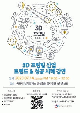 이번 강연은 3D프린팅을 활용한 성공사례와 시장 추세, 시제품 제작 및 실습 등으로 이루어지며, 관련 지식을 갖고 있지 않아도 참여할 수 있도록 이용자의 눈높이에 맞춰 진행될 예정이다.