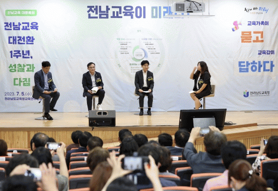 전라남도교육청이 주민직선 4기 김대중 교육감 취임 1주년을 맞아 7월 5일 전라남도교육청교육연구정보원에서 마련한 ‘전남교육 대토론회’ 참여자들은 전남교육 대전환 정책 실현 과정에서 교육공동체들의 의견 수렴과 반영이 중요하다는 데 한목소리를 냈다.