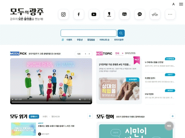 광주시 공식 사회관계망서비스(SNS) 채널인 인스타그램·페이스북·유튜브·카카오스토리·블로그·카카오톡채널과 인터넷방송 ‘헬로광주’, 시정소식지 ‘매거진G’ 등의 콘텐츠를 ‘모두의광주’에서 만나볼 수 있다.