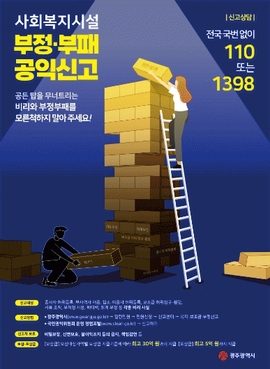 신고방법은 국번 없이 138 또는 110에서 상담할 수 있으며 광주시 홈페이지 또는 국민권익위원회 청렴포털로 신고하면 된다.
