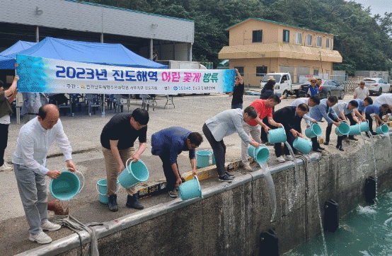 진도 꽃게 생산량은 전남 전체의 32%를 차지하고 있으나 기후변화, 남획 등으로 최근 생산량이 저조해 전남도해양수산과학원 진도지원은 2021년부터 인공종자를 생산, 지난해까지 130만 마리를 방류했다.