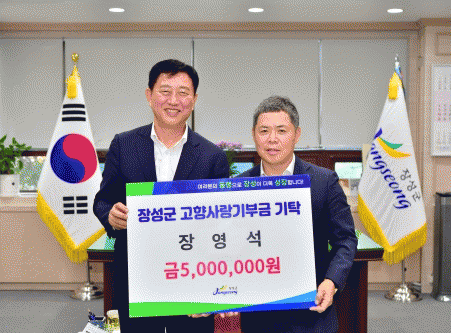 김한종 장성군수는 “한결같은 고향 사랑에 깊이 감사드린다”면서 “많은 이들의 정성으로 모아진 고향사랑기부금이 지역 발전을 이루는 소중한 밑거름이 될 수 있도록 최선을 다하겠다”고 말했다.