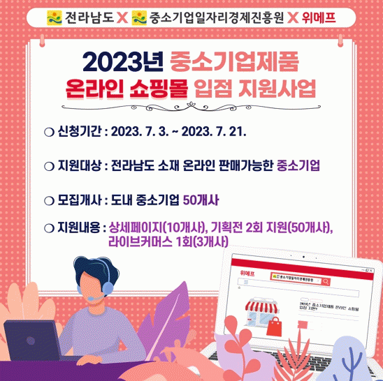 온라인 판매 가능한 전남지역 중소기업 50개 사를 선정해 ㈜위메프 입점을 지원한다.