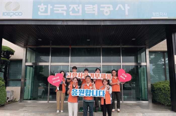 한국전력공사강진지사 직원들은 올해 1월 1일부터 시행된 강진 고향사랑기부제의 성공적인 정착과 건전한 기부문화 확산을 위해 강진 고향사랑기부제 릴레이 응원과 함께 고향사랑기부금을 강진군에 기탁했다.