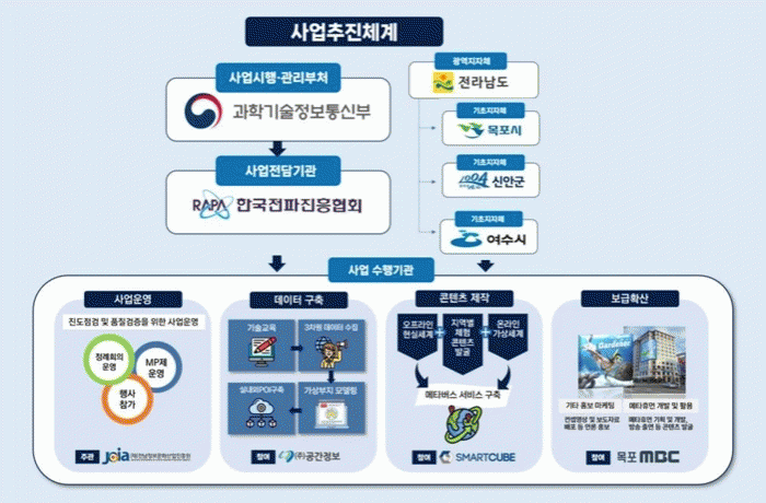 이 사업은 정보문화산업진흥원이 주관기관을 맡아 추진·관리하며, ▲사업지역은 목포시·신안군·여수시 ▲시스템 구축은 ㈜공간정보, ㈜스마트 큐브 ▲사업홍보 및 성과 확산 파트너로는 목포문화방송㈜ 이 참여하게 된다.