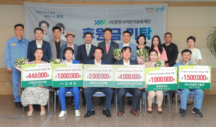 (재)광양시어린이보육재단은 6일 오전 10시 30분 정인화 광양시장, 이광용 이사장, 김희영 상임이사, 기탁자를 비롯한 관계자들 20여 명이 참석한 가운데 후원금 기탁식을 가졌다.