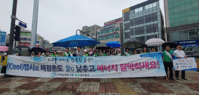 이날 캠페인에는 정인화 광양시장과 광양시 관계자, 광양기후환경네트워크 회원 및 탄소중립실천가 등 70여 명이 참여해 ‘하절기 에너지 절약 및 쿨맵시 실천으로 건강도 챙기고 온실가스도 줄이자’는 취지로 홍보활동을 했다.