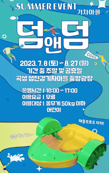 ‘기차마을 덤앤덤’ 물총놀이 이벤트도 음악분수 부근에서 8월 27일까지 동시에 진행된다. 바닥에서 물이 뿜어져 나오는 음악분수를 비롯해 물안개가 쏟아지는 공간에서 시원한 물에 흠뻑 젖으며 물총놀이를 즐길 수 있다.