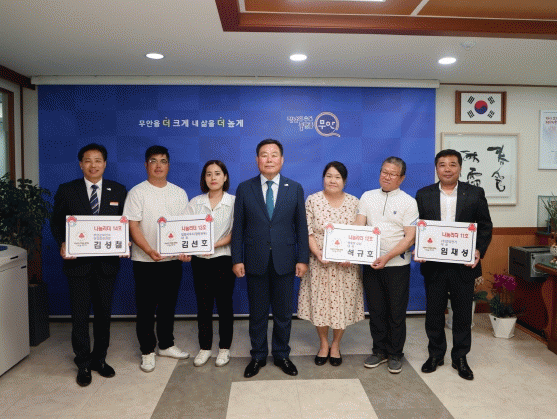 김산 군수는 “의미 있는 릴레이에 적극 참여해 주셔서 정말 감사드린다”며 “이런 캠페인을 계기로 나눔 문화가 지역사회에 잘 확산했으면 하는 바람이다”고 전했다.