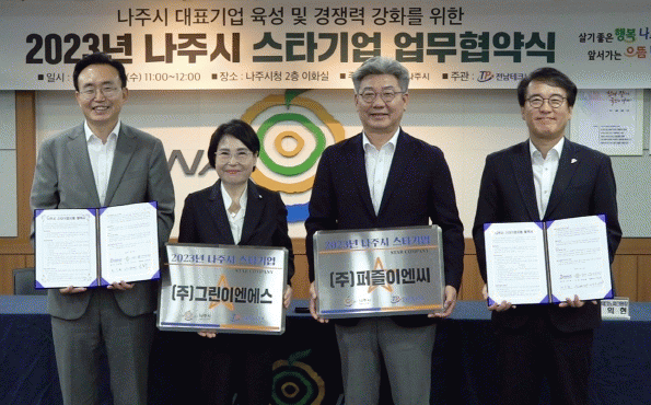 나주시는 최근 시청사 이화실에서 (재)전남테크노파크와 스타기업 2곳 선정에 따른 업무 협약식을 가졌다고 9일 밝혔다.