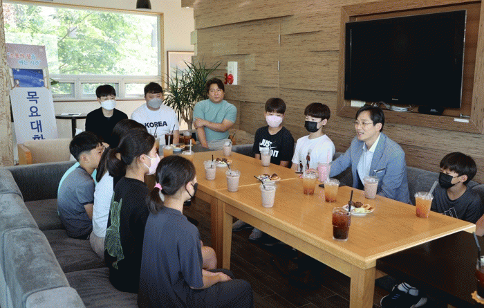 월출산기찬랜드 내 한 카페에서 진행된 이번 대화에는 영암초 수영부 학생과 학부모, 감독, 코치 등 20여 명이 참석해 수영부 현황을 공유하고, 수영 육성 방안을 모색했다.