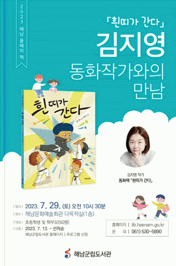 참여 대상은 초등학생 및 학부모 50명으로, 7월 13일 오전10시부터 해남군립도서관 누리집에서 신청하면 된다. 빈자리가 있을 경우 당일 현장 신청도 가능하며, 자세한 내용은 해남군립도서관으로 문의하면 된다.