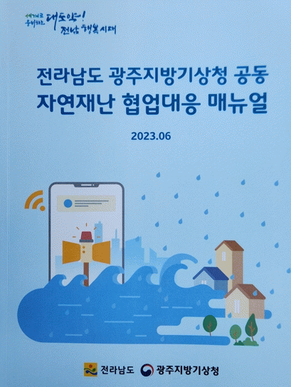 협업대응 매뉴얼에는 ▲계절별 근무체계와 단계별 표준행동요령 등 전남도 재난안전대책본부 운영 ▲기상특보 발표기준·기상정보시스템 등 기상정보 활용 및 행동 요령 ▲재난 상황별 자연재난 국민행동요령 등을 담았다.