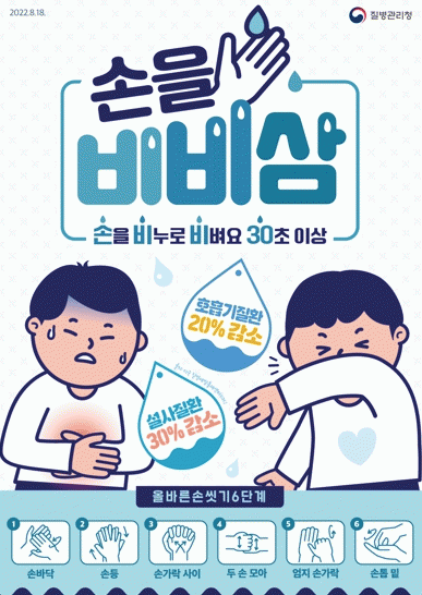 감염병 예방의 가장 효과적인 올바른 손씻기와 기침예절 실천으로 호흡기 질환 20% 감소와 대부분의 감염성 질환의 50~70%를 예방할 수 있다.