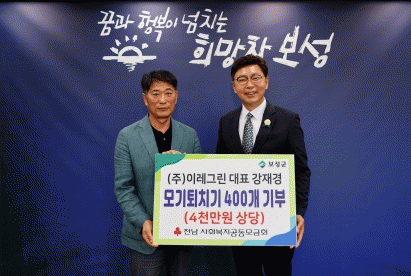 강재경 대표는 “모기와 해충이 많아지는 여름철에 보성군의 저소득 중증 장애인분들의 불편함을 해소해 드리고자 기부하게 됐다.”라고 말했다.