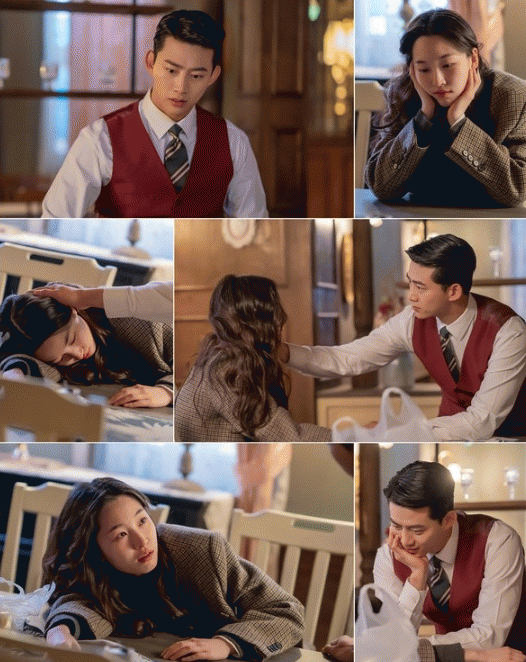 우혈은 두 뺨을 손으로 괴고 생각에 빠진 인해를 걱정스레 바라보고, 이내 무심한 위로를 전하듯 인해의 머리를 쓰다듬고 있어 왠지 모를 설렘을 자극한다.