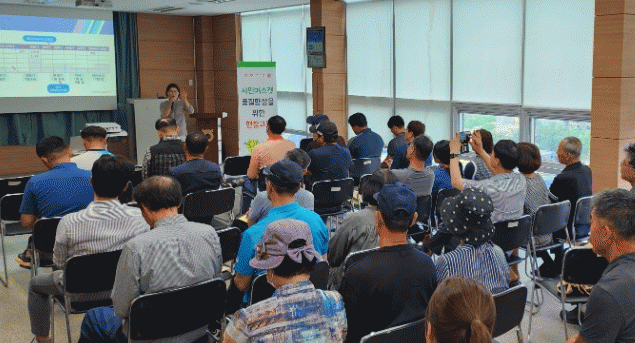 이번 교육은 장마기 이후 배수 불량에 의한 잎, 포도송이가 햇빛에 타는 ‘일소’ 증상을 중심으로 토양, 병해충 관리 및 생산 현장에서의 생육 진단과 환경관리를 실시했다.