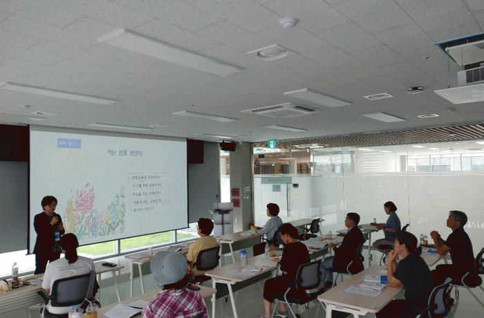 (사)한국문해교육협회 위탁으로 총 34명의 교육생이 7월 10일부터 8월 29일까지 2차로 나누어 운영하며 차수별 48시간의 교육을 받는다.