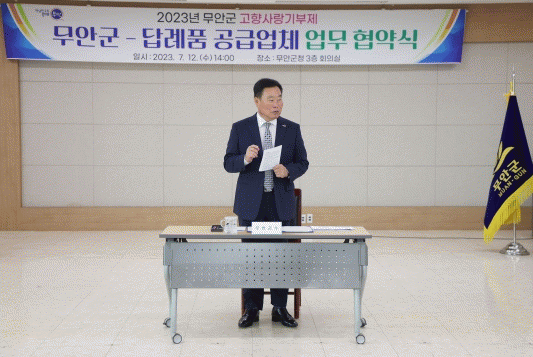 김산 무안군수는 “고향사랑기부제는 기부금을 통해 지역발전의 소중한 동력을 마련하고, 기부자들이 만족하는 답례품 제공을 통해 지역경제 활성화에 기여할 수 있다는 점에서 의미가 크다”며 “공급업체 대표들께서는 무안을 대표하는 상품을 공급한다는 자부심을 가지고 최상 품질의 답례품 제공으로 기부자들의 따뜻한 마음에 보답해주시라”고 말했다.