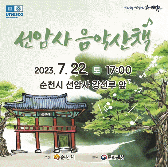 한편, 시는 오는 8월 한 달간 선암사와 순천만갯벌을 무대로 ‘2023 세계유산축전-선암사.순천갯벌’을 개최한다. 축전은 세계유산 속에 특별한 공간과 시간, 비움과 쉼을 담은 공연?체험?전시 등 다채로운 프로그램들을 선보인다.