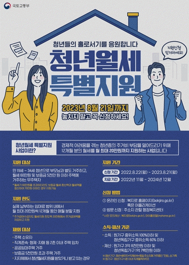 ‘청년월세 한시 특별지원’은 지난해 8월부터 국토교통부 주관으로 청년 자립기반 마련과 청년층 주거비 부담을 덜어주기 위한 사업이다.