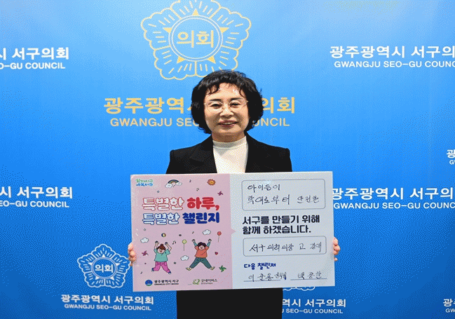 고경애 의장은 “이번 챌린지가 널리 알려져 아동권리 신장에 도움이 되길 바란다. 우리 아이들이 건강하고 행복하게 미래를 꿈꿀 수 있는 환경을 만들기 위해 아동 문제 전반을 살피고 개선하는 데 힘쓰겠다”고 말했다.