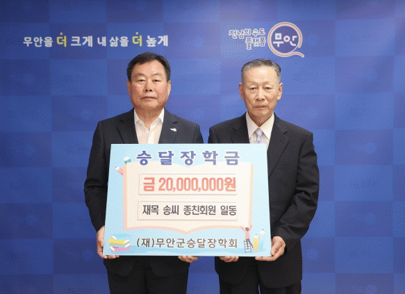 송기창 회장은 “이번 장학금 기탁으로 지역 인재 육성에 보탬이 되길 바라며, 더불어 지역 사회를 위한 활발한 나눔에 적극적으로 동참하여 살기 좋은 무안을 만드는 데 일조하고 싶다”고 밝혔다.